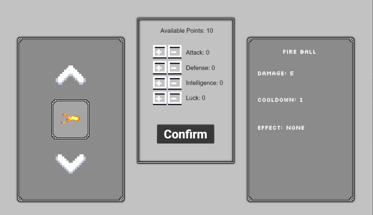 To change spells use the Up/Down arrows. The spell information will appear in the panel on the right. Some spells have effects to them such as a slow or knock back.